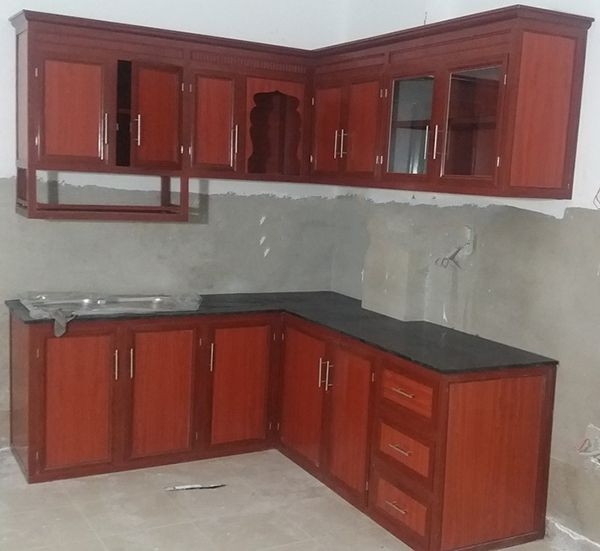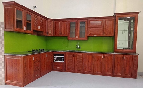 Kiểu dáng chữ L với thiết kế tiện nghi, hiện đại kết hợp đầy đủ công năng sử dụng của tủ bếp giúp mang đến sự hài lòng nhất cho gia chủ khi dùng.